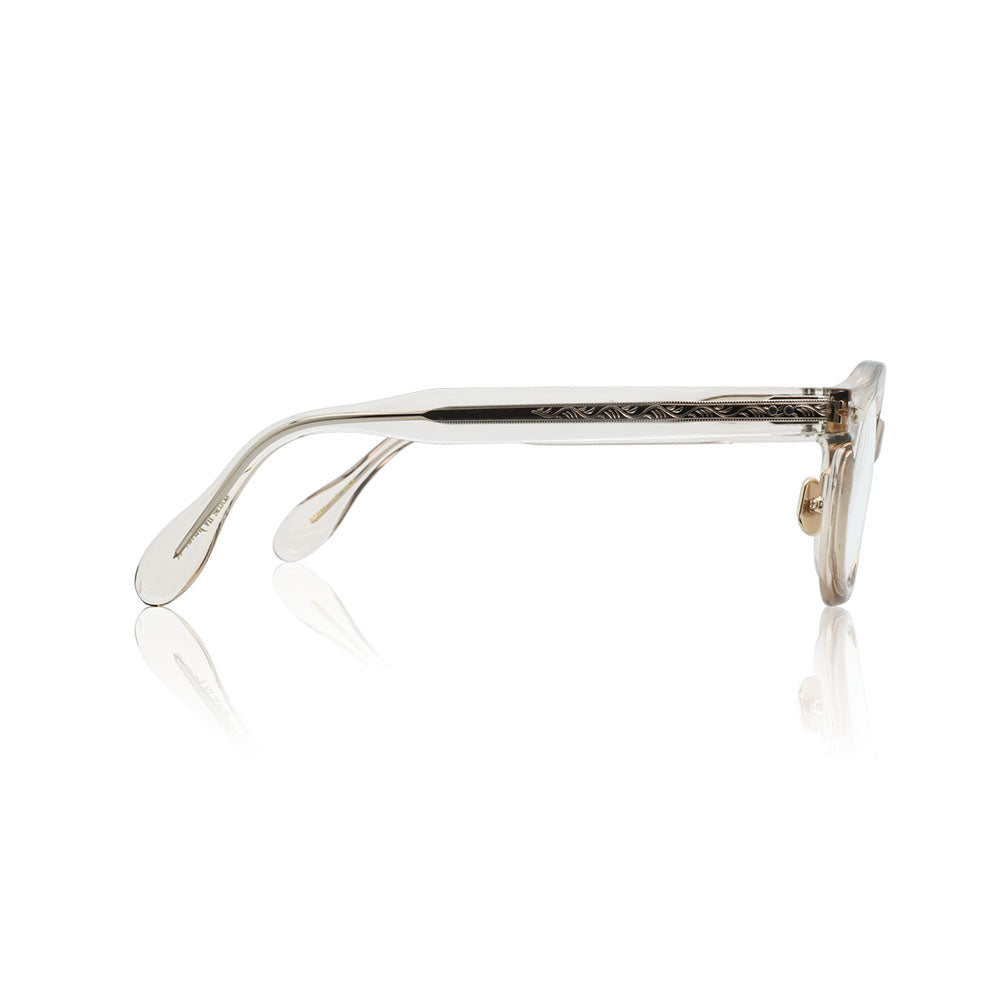 また、最初期のGROOVERで取り入れられていたオーセンティックなブリッジラインが、このAZTECのラウンドフォルムをより際立たせています。このブリッジは単なる機能的な要素にとどまらず、全体のバランスや美しさを引き立て、見る人に強い印象を残します。デザイナーの緻密な計算と遊び心が感じられ、古代遺跡の幾何学的なモチーフや歴史的文様にもどこか通じる雰囲気をまとっています。