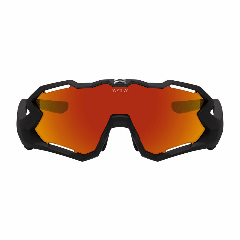 ロードバイクなど前傾の深いポジションをとった時に、サングラスのフレーム上部が視界に入ってしまう経験をされた方も少なくないと思います。例えば野球のフライやテニスのサーブトスなど、上方を見るプレーがスポーツでは少なくありません。そんなシーンで活躍すること間違いなしの「MANTRA- マントラ-」シリーズ。上方向の視界と横方向の視界を確保したスーパースポーツモデルです。XAZTLAN の中でも言わば、一番プロユースな最上位モデルとなっております。主にMANTRA S は小顔の方に向けられて作られたモデルで、自転車乗りの方はもちろん、ランニングやテニスをされる方にオススメです