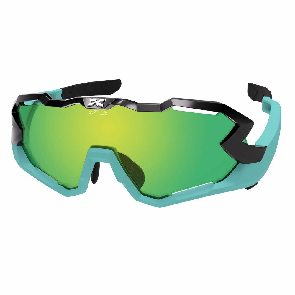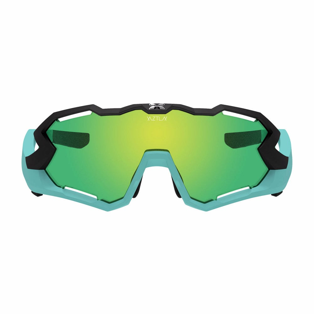 ロードバイクなど前傾の深いポジションをとった時に、サングラスのフレーム上部が視界に入ってしまう経験をされた方も少なくないと思います。例えば野球のフライやテニスのサーブトスなど、上方を見るプレーがスポーツでは少なくありません。そんなシーンで活躍すること間違いなしの「MANTRA- マントラ-」シリーズ。上方向の視界と横方向の視界を確保したスーパースポーツモデルです。XAZTLAN の中でも言わば、一番プロユースな最上位モデルとなっております。主にMANTRA S は小顔の方に向けられて作られたモデルで、自転車乗りの方はもちろん、ランニングやテニスをされる方にオススメです